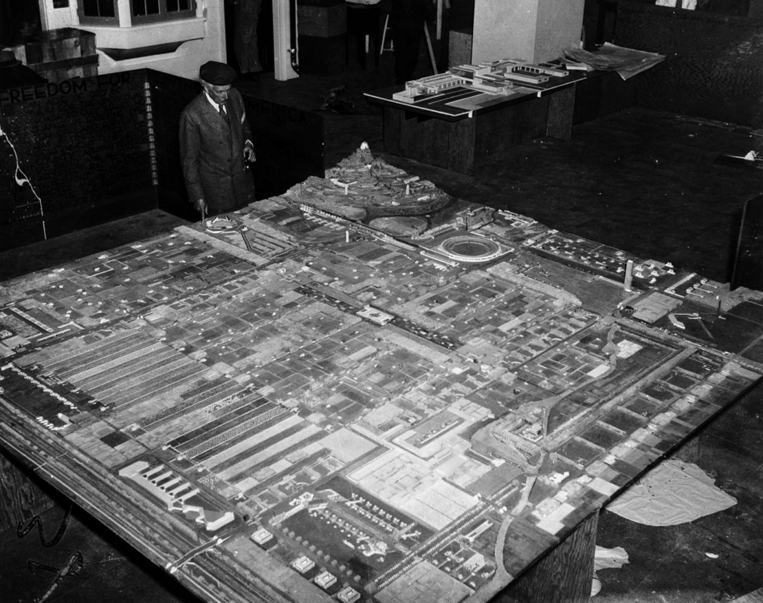 This is a theme that has long been central to the history of the Expo as a sort of open studio for world architecture, city planning, technology and design. The Beaux Arts ornamentalism of Daniel Burnham's White City at the heart of the Chicago World's Fair became the template for civic centres everywhere, from DC's National Mall to Cardiff's Cathays Park, prompting a campaign to preserve it by the English journalist William Stead. The 1939 New York Fair of the Future's theme was Building the World of Tomorrow; and it featured at its heart General Motors' Futurama, a hugely popular 18-minute ride designed by Norman Bel Geddes and later immortalised in the opening sequence of Matt Groening's cartoon.