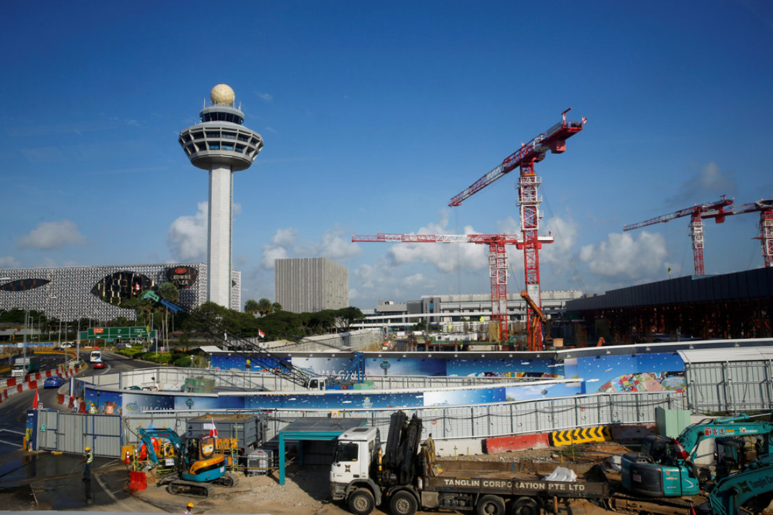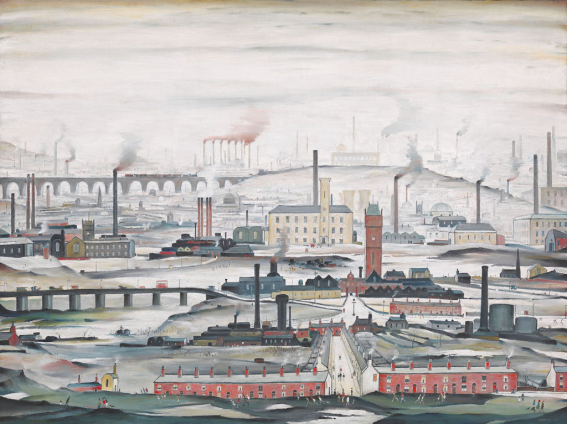 We can only imagine what LS Lowry might have made of the glittering architecture and towers of Singapore. His visions of the industrial north of Britain were firmly rooted in the ordinary worker, so it would be interesting to know what he might have thought of a tropical financial centre where steel and glass buildings would dwarf the chimneys and factories of his world. But the link between this photograph of the construction of the £267m Changi airport known as Project Jewel, with its cranes over overhanging clouds, is striking yet anomalous. The colours couldn't be more different, the saturation of the modern photograph almost gaudy by comparison. But Lowry's 1955 Industrial Landscape is not so very different in structure from the Malaysian island city state.