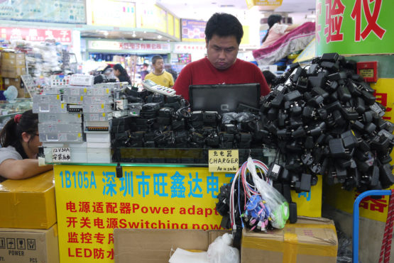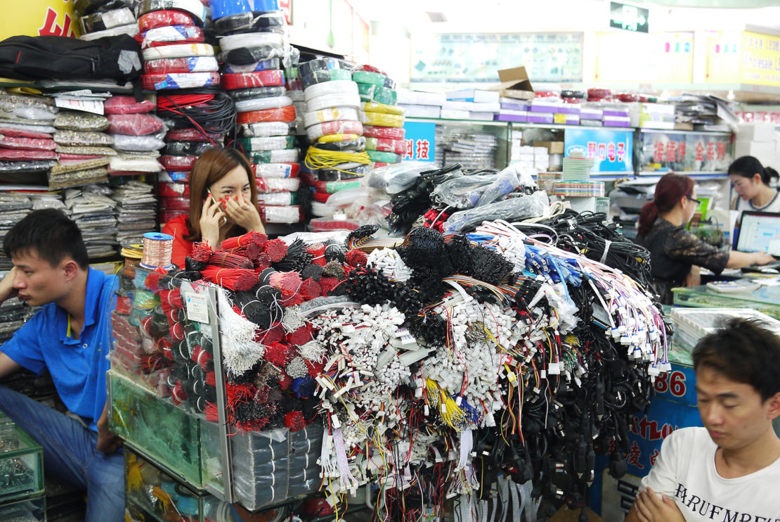 At the electronics markets of Huaqiangbei, a high-rise area in the middle of Shenzhen, multi-floor malls sell a panoply of computing dross, from high-margin, fully assembled computers and the latest trending gadgets – hoverboards and microdrones, on our visit – to disassembled scrap and new parts.
