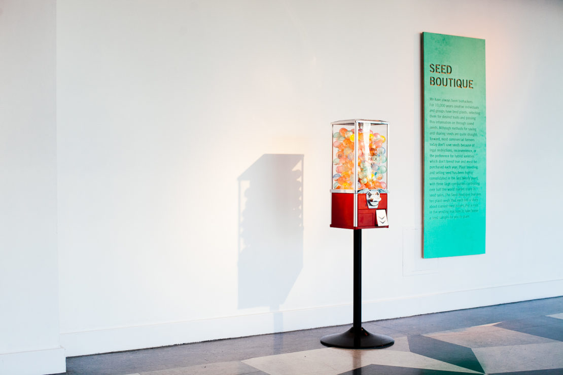 Another exhibit, the 'Seed Boutique', showcases a history of biohacking. It includes cross-pollinated antimicrobial lettuce (the first food to be grown and eaten on the International Space Station), the Irish Stormont Cirrus Linseed (guarded by scientists during the 28-month Siege of Leningrad) and the improbably hipster 'flower sprout': a hybrid vegetable grown from Brussels sprout and kale seeds.