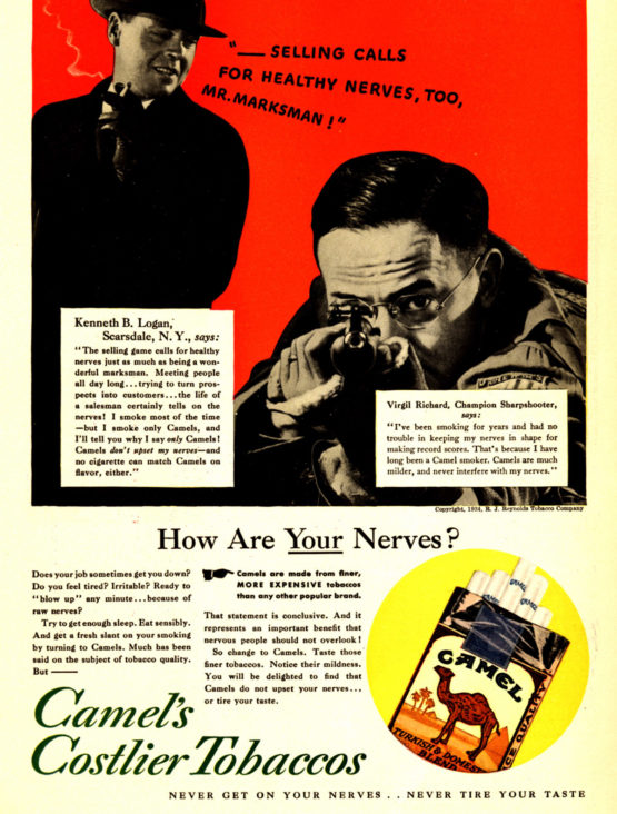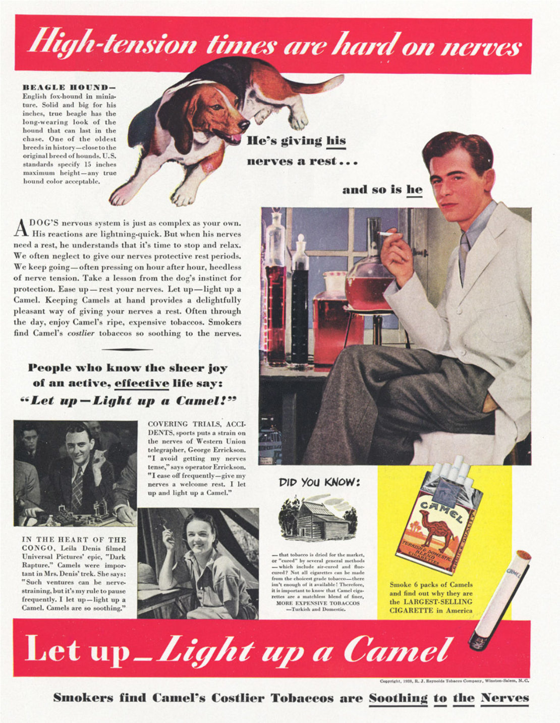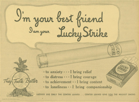 Why were tobacco manufacturers so interested in stress? First of all cigarettes were marketed as a stress reliever. "To anxiety… I bring relief," reads a 1930s advertisement for Lucky Strike. So if research could help them pin poor mental and physical health to stress, this sort of message would carry more weight. (Incidentally, the still widespread belief that smoking reduces anxiety appears to be wrong).