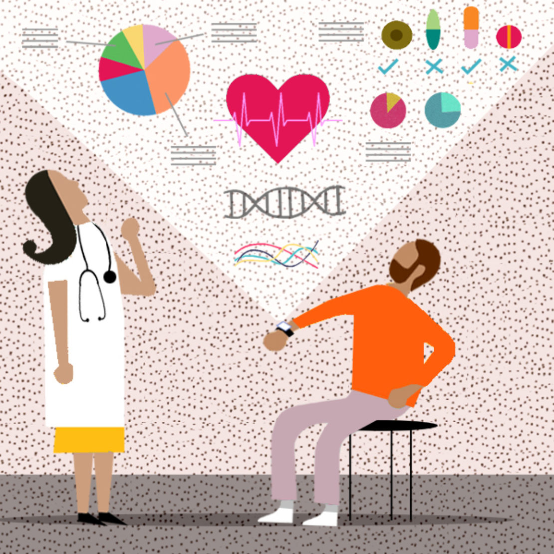 The year is 2027. Dorothy visits her GP about panic attacks she's been getting at work. Before prescribing any treatment, the doctor looks at her genetic history for markers that could affect her response to certain drugs. The GP is looking in particular for CYP2C19 polymorphism, which would mean Dorothy can't metabolise a group of medicines (SSRIs); and at the same time, she examines her patient's sequenced DNA to see if she carries the genetic mutation responsible for panic disorder. Dorothy is a heavy drinker and her doctor sees that she carries a risk gene for alcohol dependence. She considers a drug that could modulate the gene. Dorothy leaves with a smartwatch to log her daily life for the next week: her quality of sleep, diet, exercise, stress, mood and activity.
