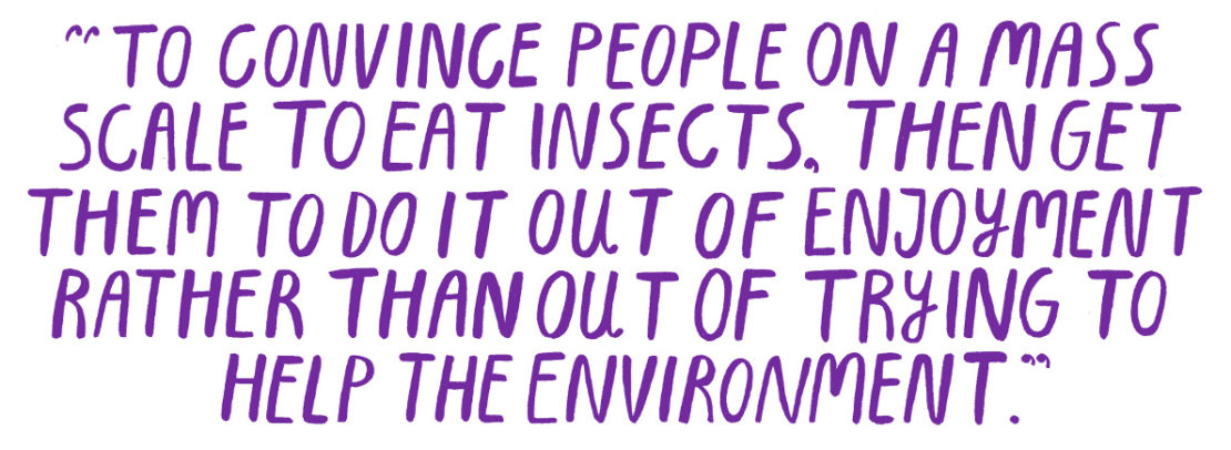 "The key issue here is that cooks have more responsibility than they may realise," he says. "One of our collaborators published a paper in [the journal] Nature saying, "If you want to convince people on a mass scale to eat insects, then get them to do it out of enjoyment rather than out of trying to help the environment. It has to be about pleasure, so that falls to the chef to create something delicious."