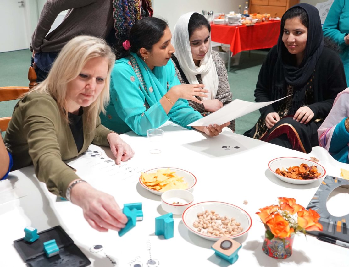 Over tea and homemade cake, Covaci explains to the Pakistani women how to make the dish with braised meat, rice and cabbage. They listen carefully and ask questions about spices. As Covaci talks, one of the women takes the cardboard iceberg and writes a few words beneath the waterline, first in Urdu and then in English: recipe swap.