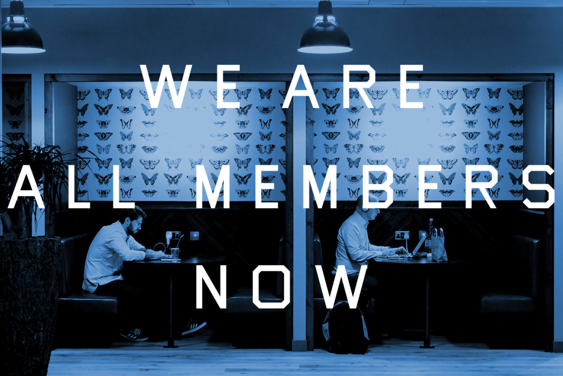 We are all members now, it seems. Business ventures are turning themselves into clubs, making what used to be banal choices about office space or energy supply statements of identity. There was no shortage of office options for Wood and Gudka, and all of them carried connotations about what kind of business they meant to be: incubators and accelerators run by different sorts of organisations; hacker spaces; industry- and sector-coworking spaces; more traditional office rentals from companies like Regus and Workspace; and all manner of coworking spaces, from scruffy coops to coworking empires.