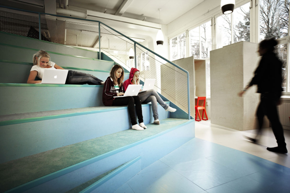 Often described as a "school without walls", instead of comprising conventional classrooms Telefonplan's design allows students to be taught in groups adjusted to their unique needs and achievement levels.